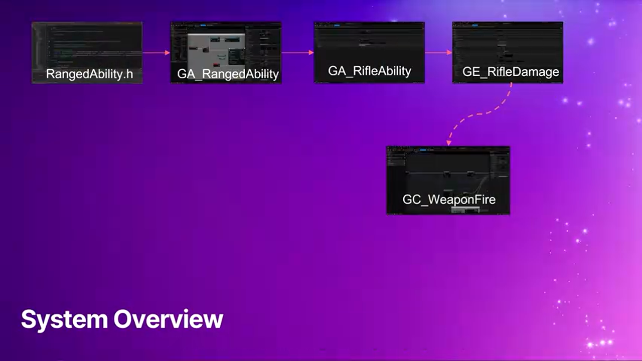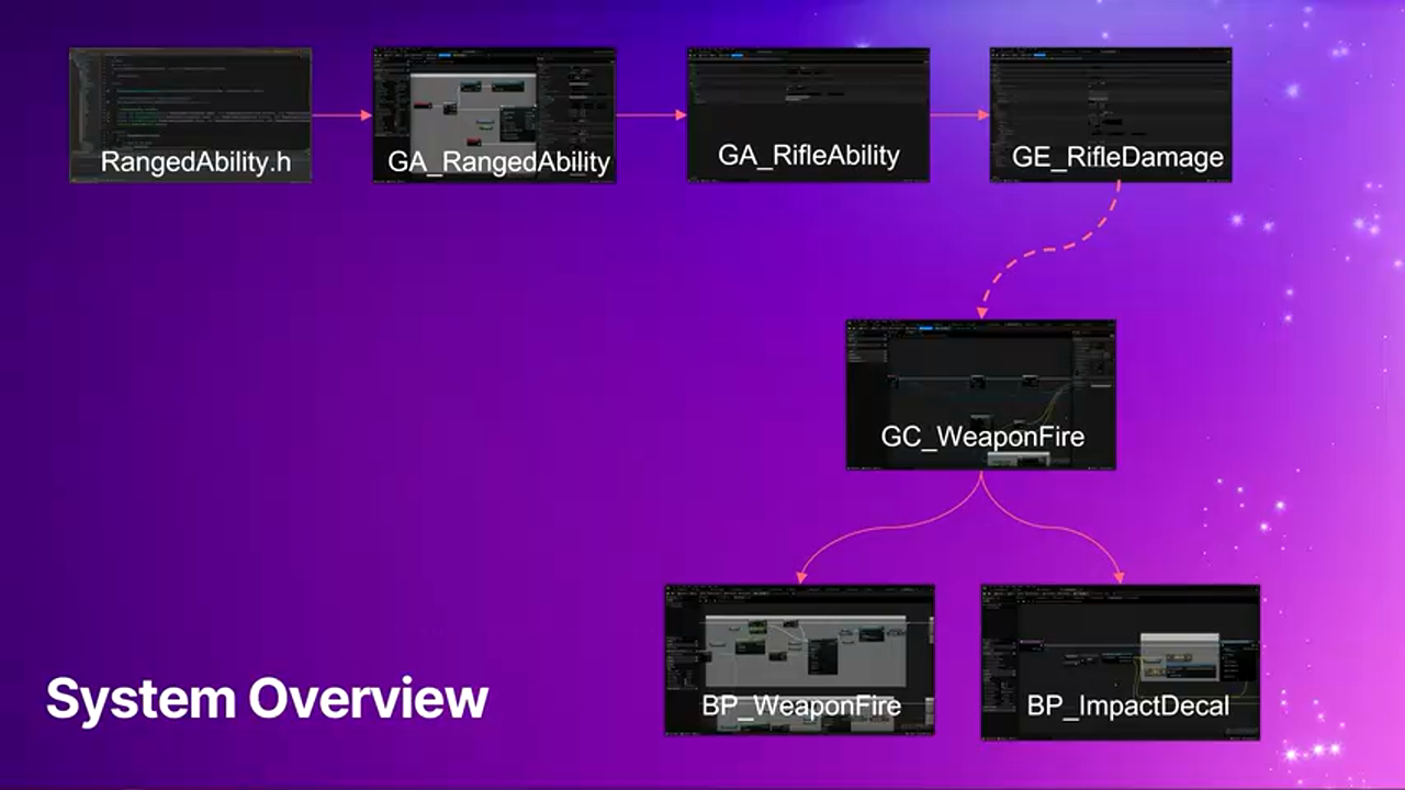 4. 系统设计减少资产竞争 - 分层架构:不同职能在不同层级工作 - GAS案例:C++基类 → Blueprint流程 → 数据专用BP → Gameplay Effect/Cue - UI开发:MVVM模式实现前后端解耦
