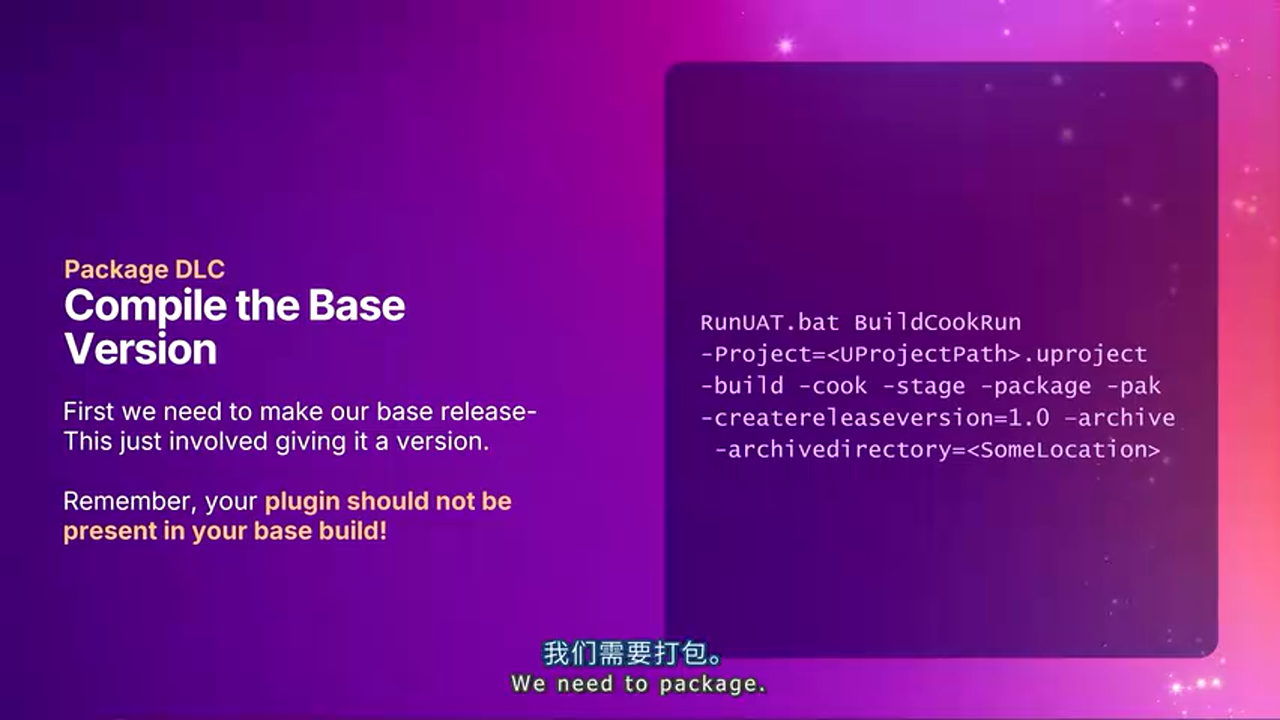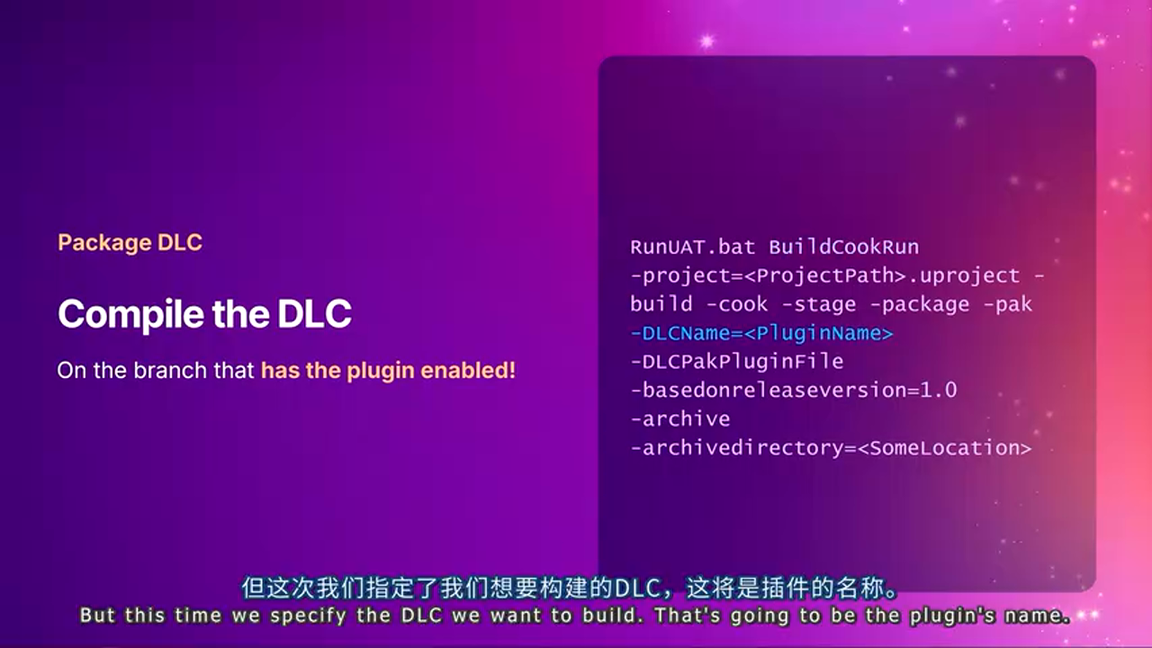 切换到DLC分支,再次运行BuildCookRun,但这次指定要构建的DLC(插件名称)。