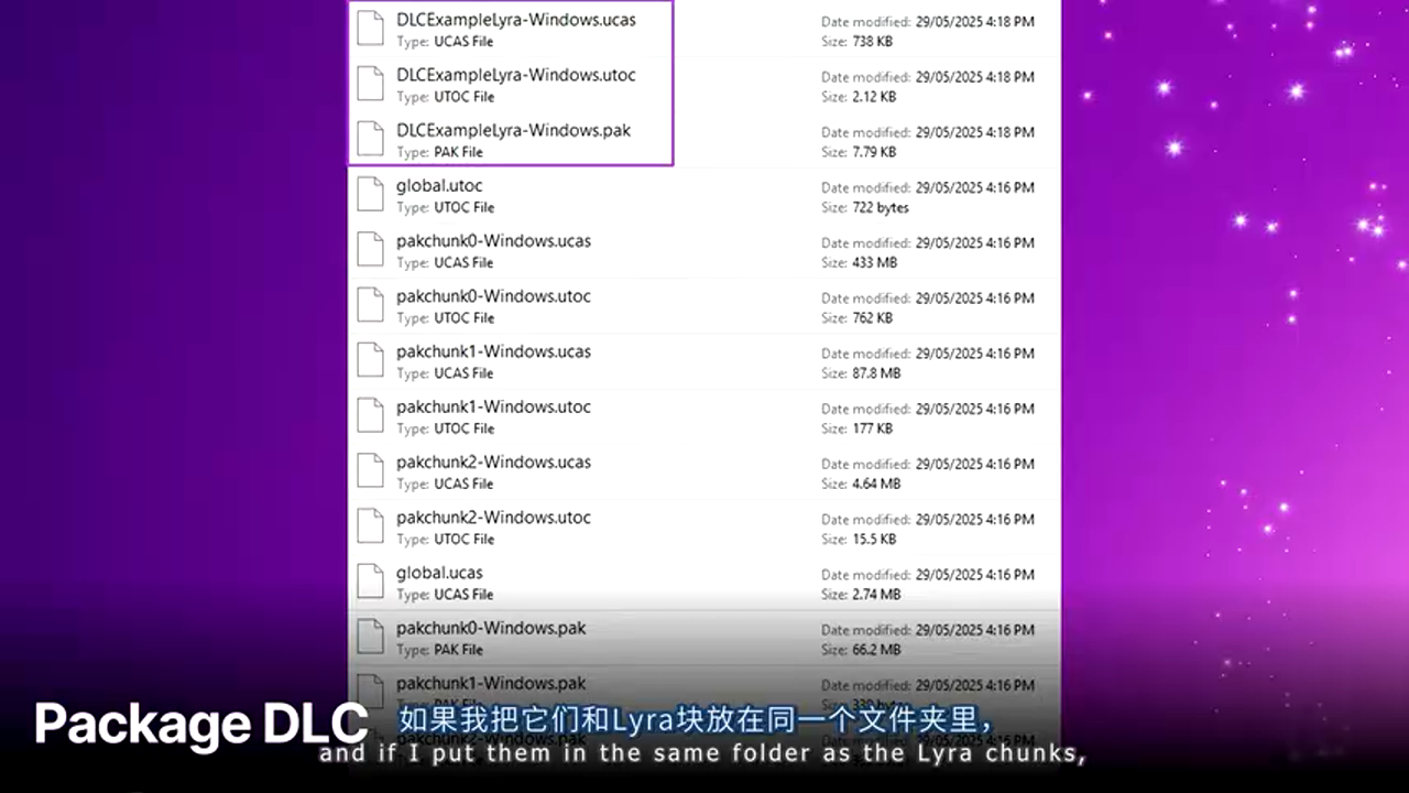 打包完成后,会输出一堆来自核心Lyra游戏的分块(Chunks)。